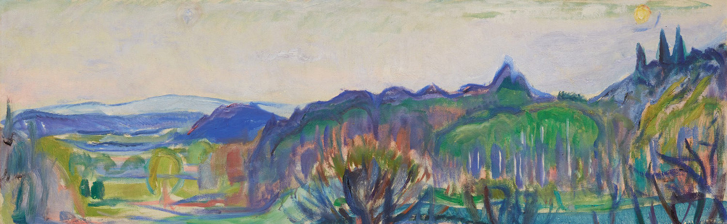 Edvard Munch (1863–1944) was born in Løten, Norway, and studied design and art in Oslo. In May of 1885 he traveled to Paris on a scholarship, and after the deaths of his sister and father the following year, he began to spend most of his time in France. His painting first achieved fame with an 1892 exhibition in Berlin, which also led directly to his influence upon the German Expressionists. Despite struggles with alcohol and mental health, Munch lived to the age of 80.