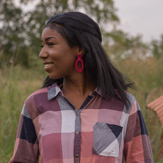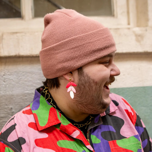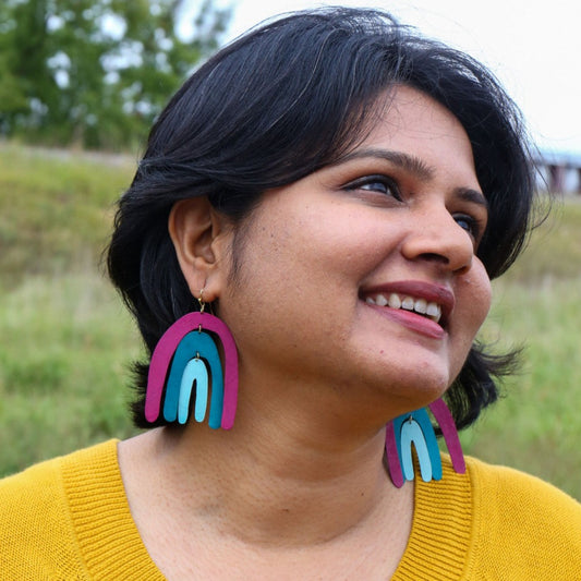 Painted Rainbow Statement Earrings (Magenta & Teal)