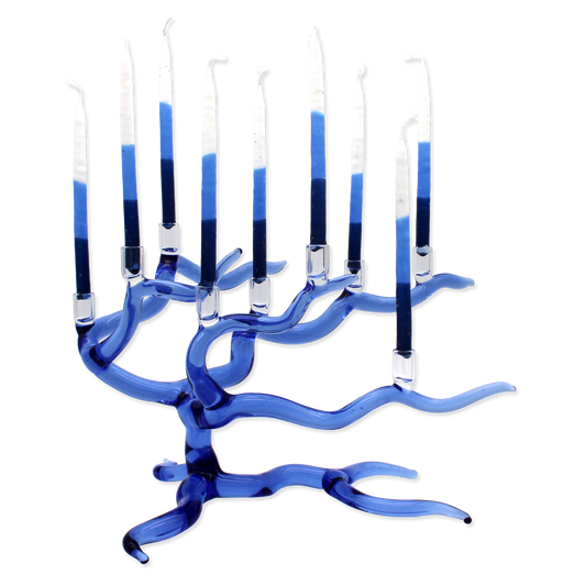Windswept Tree of Life Glass Menorah in Cobalt Blue