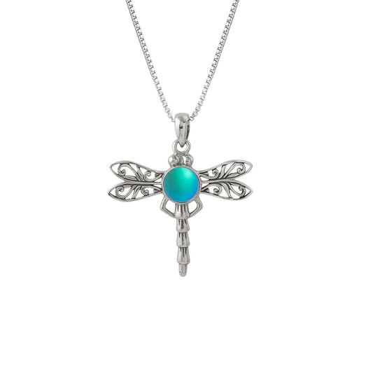 Sterling Silver Dragonfly Pendant with Crystal - Blue