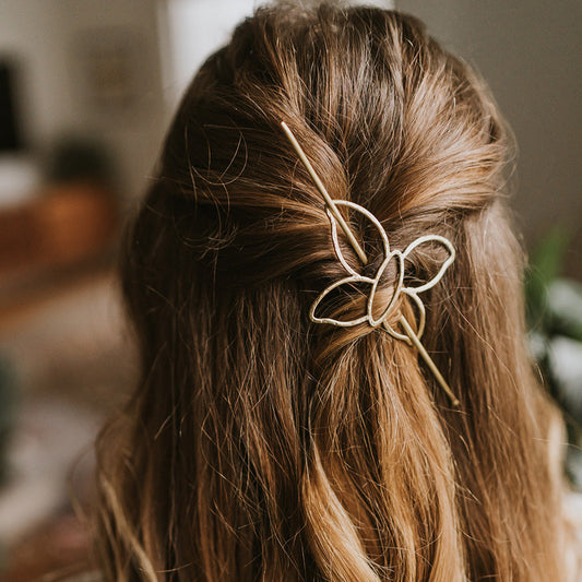 Kairavini Lotus Hair Slide with Stick (Gold)