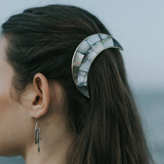 Chandra Crescent Moon Hair Clip (Mother of Pearl)