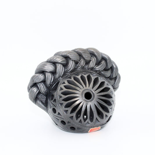 Smoked Clay Skull Vase from Oaxaca