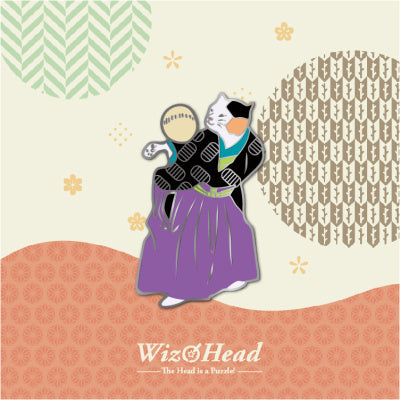 Enamel Pin: Ukiyo-e Cat Musician in Purple Kimono