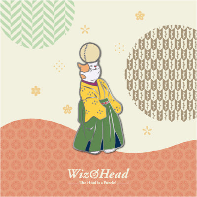 Enamel Pin: Ukiyo-e Cat with Ball in Yellow Kimono