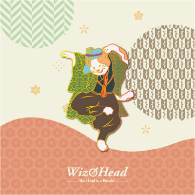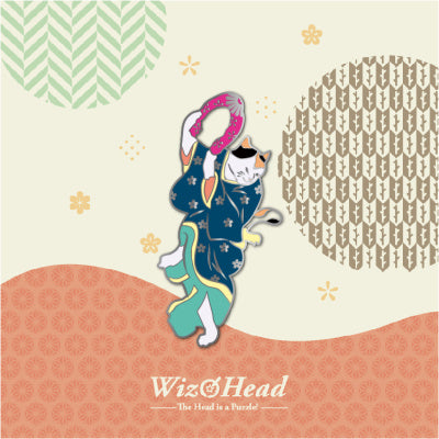 Enamel Pin: Dancing Ukiyo-e Cat in Green Kimono