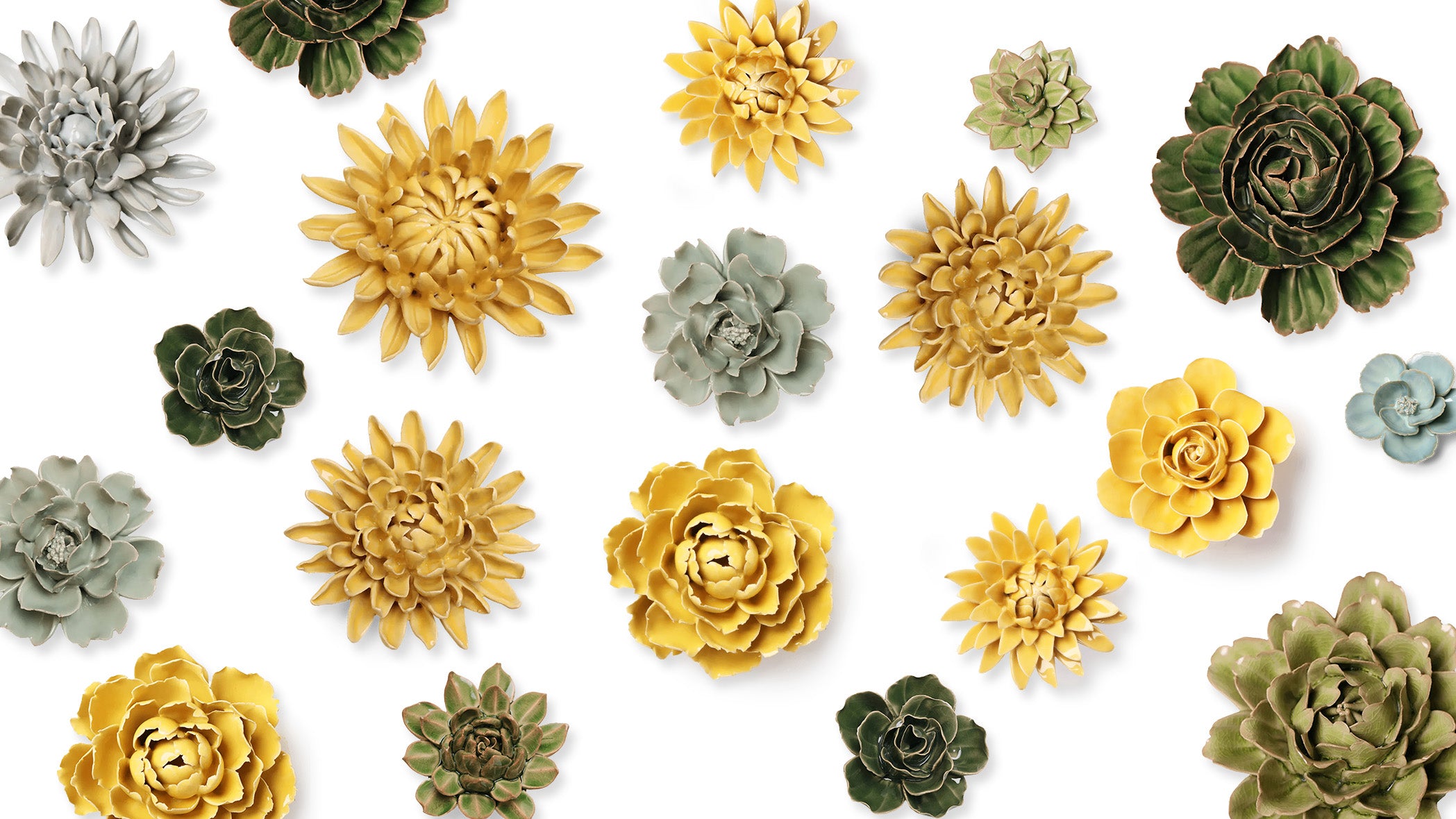 Wallflowers are handcrafted ceramic blooms designed to brighten any space—whether hung on a wall or artfully arranged on a table or mantel. Sold individually, they’re even better in a bouquet. Mix, match, and let your walls bloom.