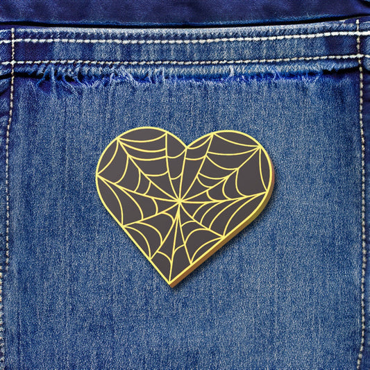 Glow-in-the-Dark Cobweb Heart Enamel Pin