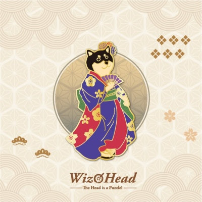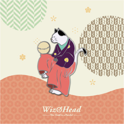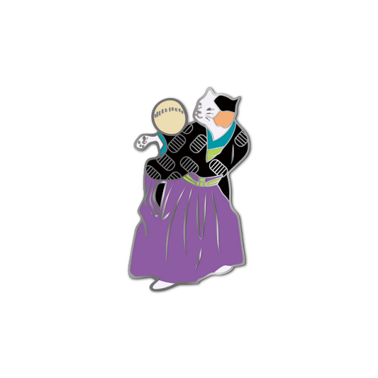 Emaille-Anstecker: Ukiyo-e-Katze mit Ball im lila Kimono