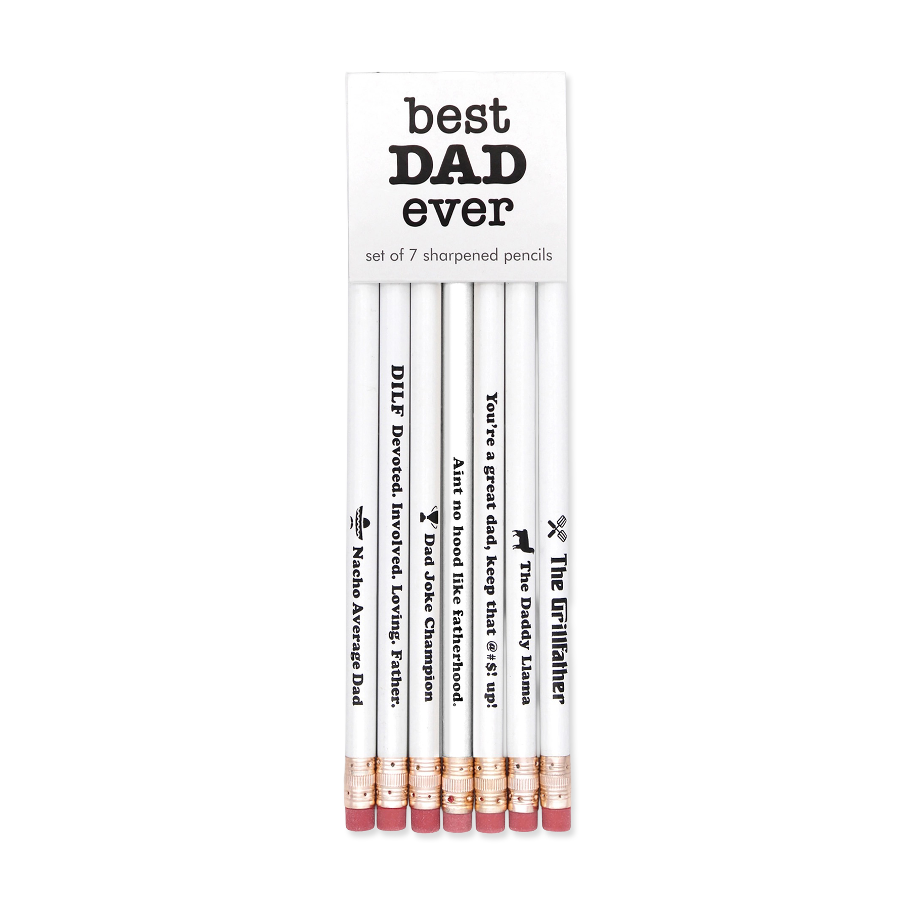 Celebrate dad with this playful set of 7 sharpened #2 pencils, each featuring a fun phrase like "The Grillfather" and "Dad joke Champion." Perfectly sized and packaged in a cello bag, these pencils make a quirky, practical gift that brings a smile while helping him jot down his best ideas. Great for the dad who enjoys a little humor with his writing!