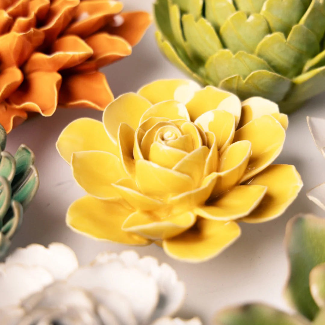 Elevate your interior with these artisan-crafted Burnt Yellow Begonia ceramic blooms, where botanical inspiration meets functional wall art. Each piece arrives equipped with integrated mounting hardware and protective foam backing to ensure flawless installation and wall preservation. The versatile design invites both solitary display and strategic clustering—odd-numbered arrangements yield particularly striking compositions. A recessed slot accepts standard wall anchors for dependable hanging, while premium packaging positions these sculptural accents as thoughtful offerings for discerning collectors. The rich, warm yellow palette complements existing ceramic installations with understated sophistication.