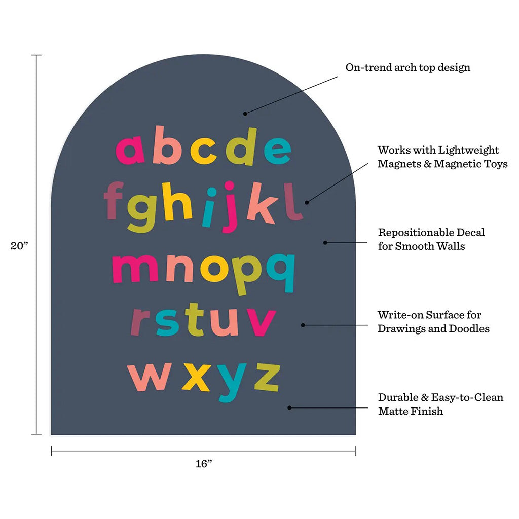 Give your space a fun boost of style and practicality with our Mini Arch Magnetic Wall Decal in a compact 16x20" size. It’s perfect for cozy play zones, desks, dorm rooms, or classroom corners where creativity meets organization. The magnetic surface easily holds lightweight letters, notes, and visuals, while the writable finish encourages doodles, reminders, and spelling fun. With our enhanced repositionable adhesive, it sticks firmly to smooth walls but can be moved whenever you want.