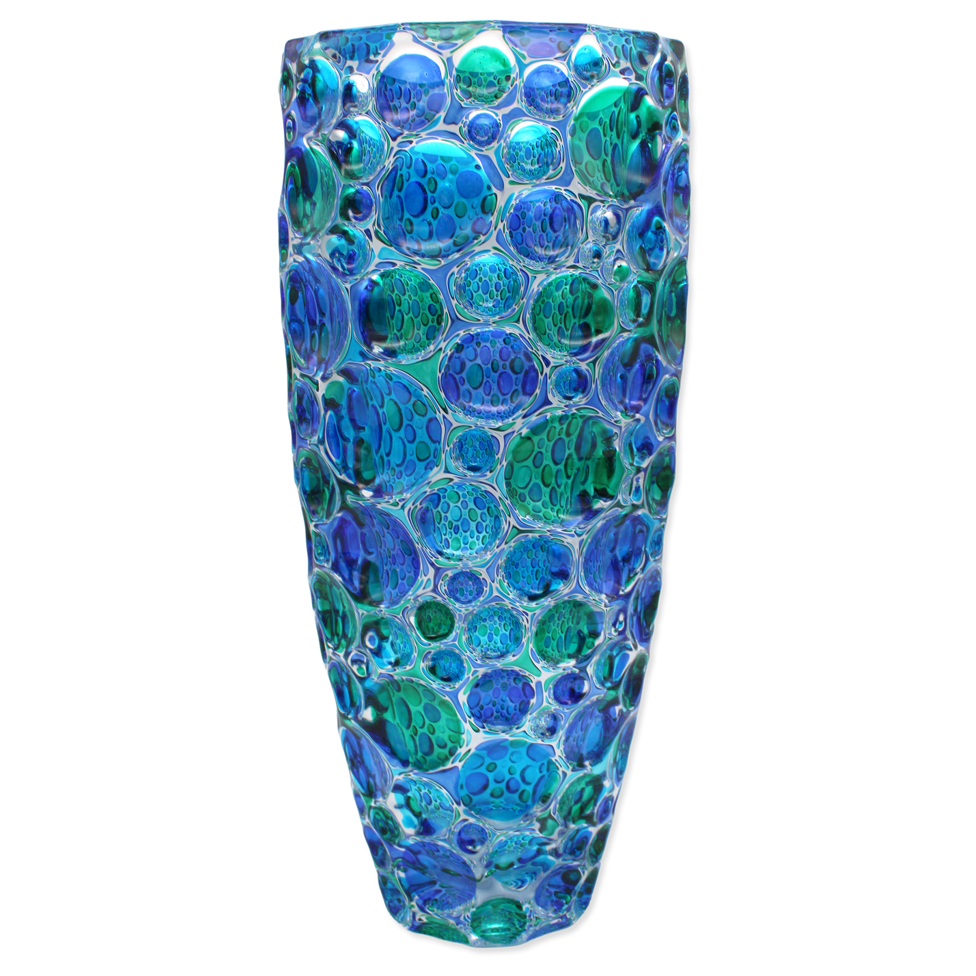 Feine Kristallvase hergestellt in Italien in der Nähe von Venedig. Die Farben werden von Hand aufgetragen und dann für die Haltbarkeit eingebrannt. Macht eine atemberaubende Präsentation mit oder ohne Blumenarrangement.