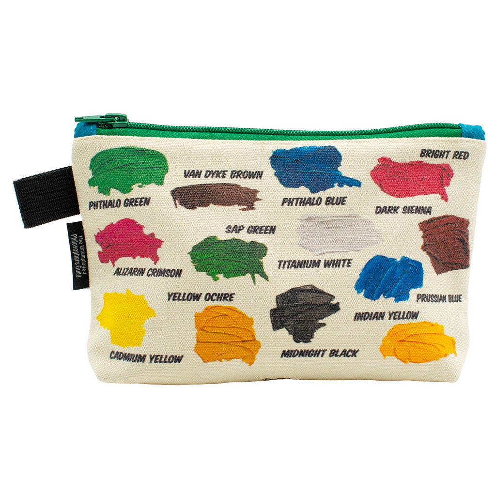 Die Freude am Malen? Jetzt können Sie die Show mit dieser Alltagstasche auf Reisen mitnehmen! Eine Seite ist mit den 13 Farben gefüllt, die er am häufigsten verwendet hat, sodass Sie Ihre Palette genau wie er füllen können. Drehen Sie sie um und Sie finden ein inspirierendes Zitat und ein Bild aus einem seiner klassischen Gemälde, um Ihre kreativen Säfte fließen zu lassen. Außerdem ein farbenfrohes Etikett mit allen Details zu Bob Ross – seinem ikonischen „Nass-in-Nass“-Stil, Fakten über ihn und seinen Platz in der Kunstgeschichte. Genau das, was Sie brauchen, um Ihre Kunstutensilien mit Stil zu transportieren.