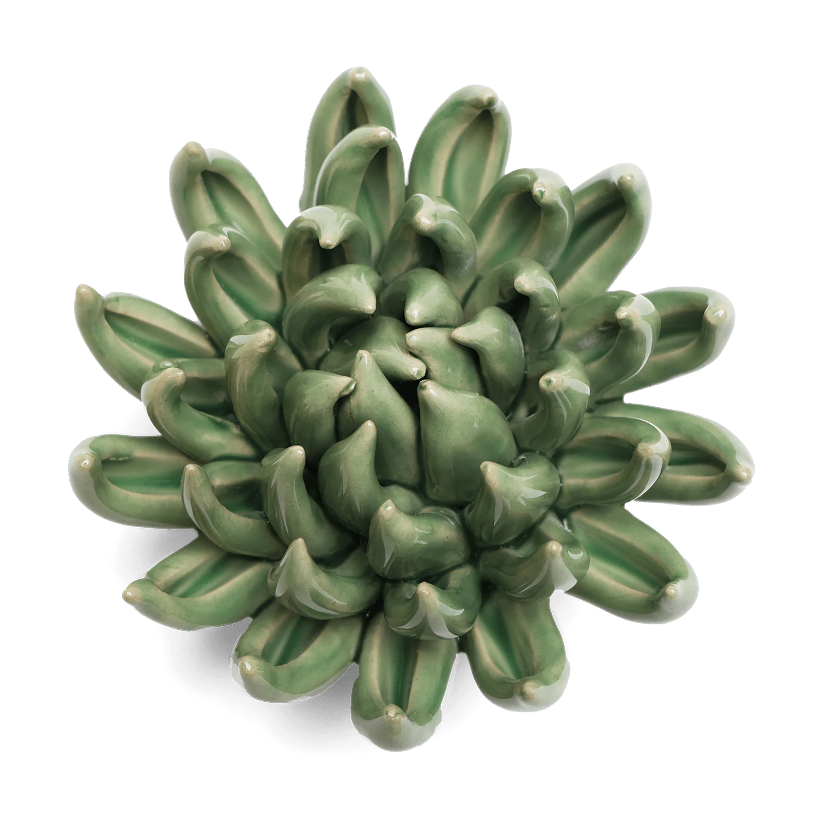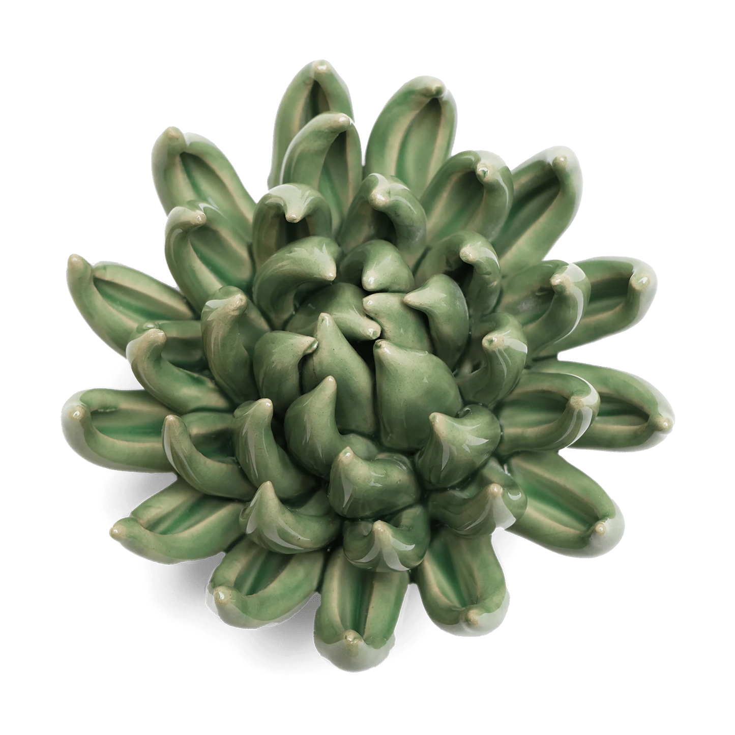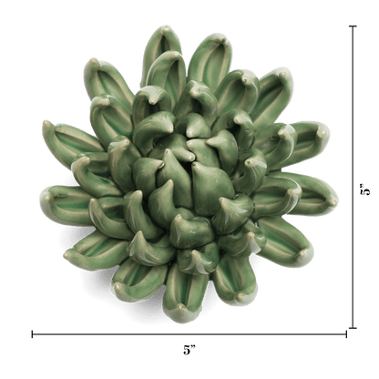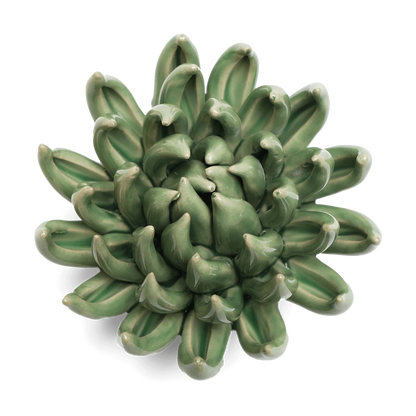 Enhance your decor with handmade Jade Green Succulent Ceramic Wallflowers that can be easily hung or scattered for a unique art installation. Each flower has a slot for hanging and foam bumpers for surface protection. Simply use a nail or screw for effortless installation. Experiment with odd-numbered arrangements for optimal results, and don't worry about color combinations as they all complement each other beautifully. Each flower is beautifully packaged in an illustrated box perfect for gifting.
