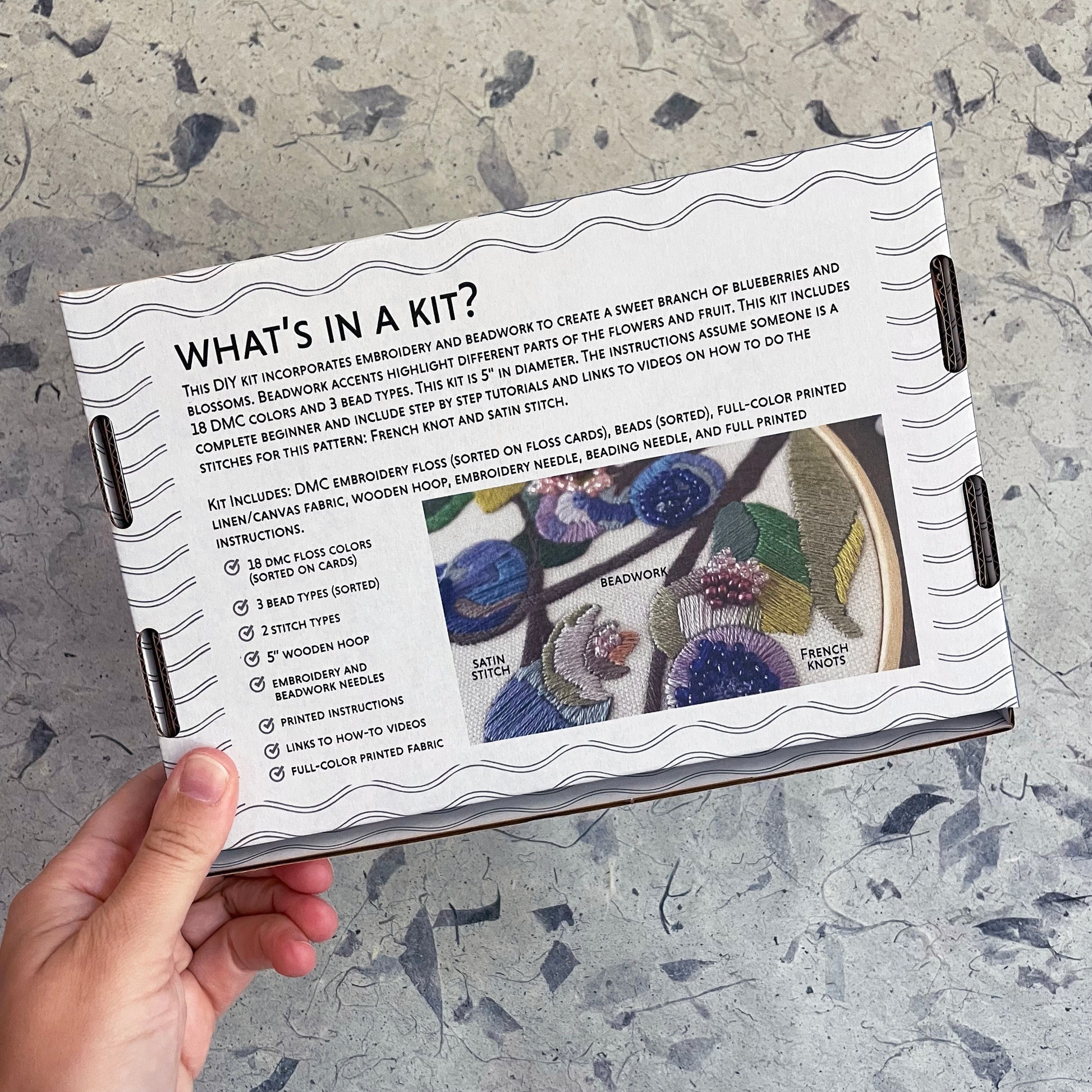 DIY Embroidery & Beadwork Kit: Blueberry Blossoms