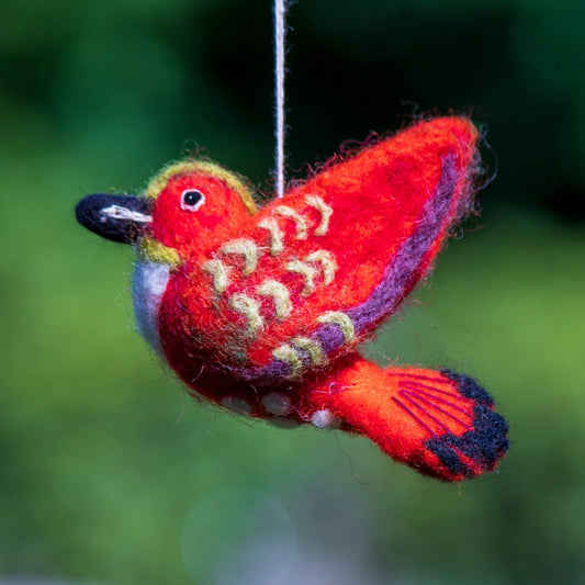 Adorno de colibrí rufo de lana hecho a mano