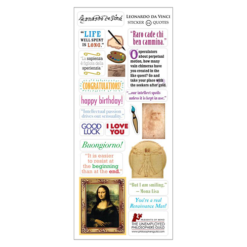 Tarjeta de notas troquelada Leonardo da Vinci con pegatinas