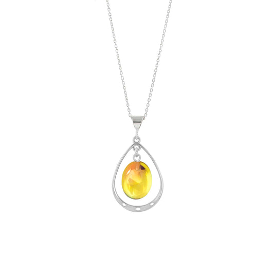 Colgante de cristal ovalado con aro de plata de ley