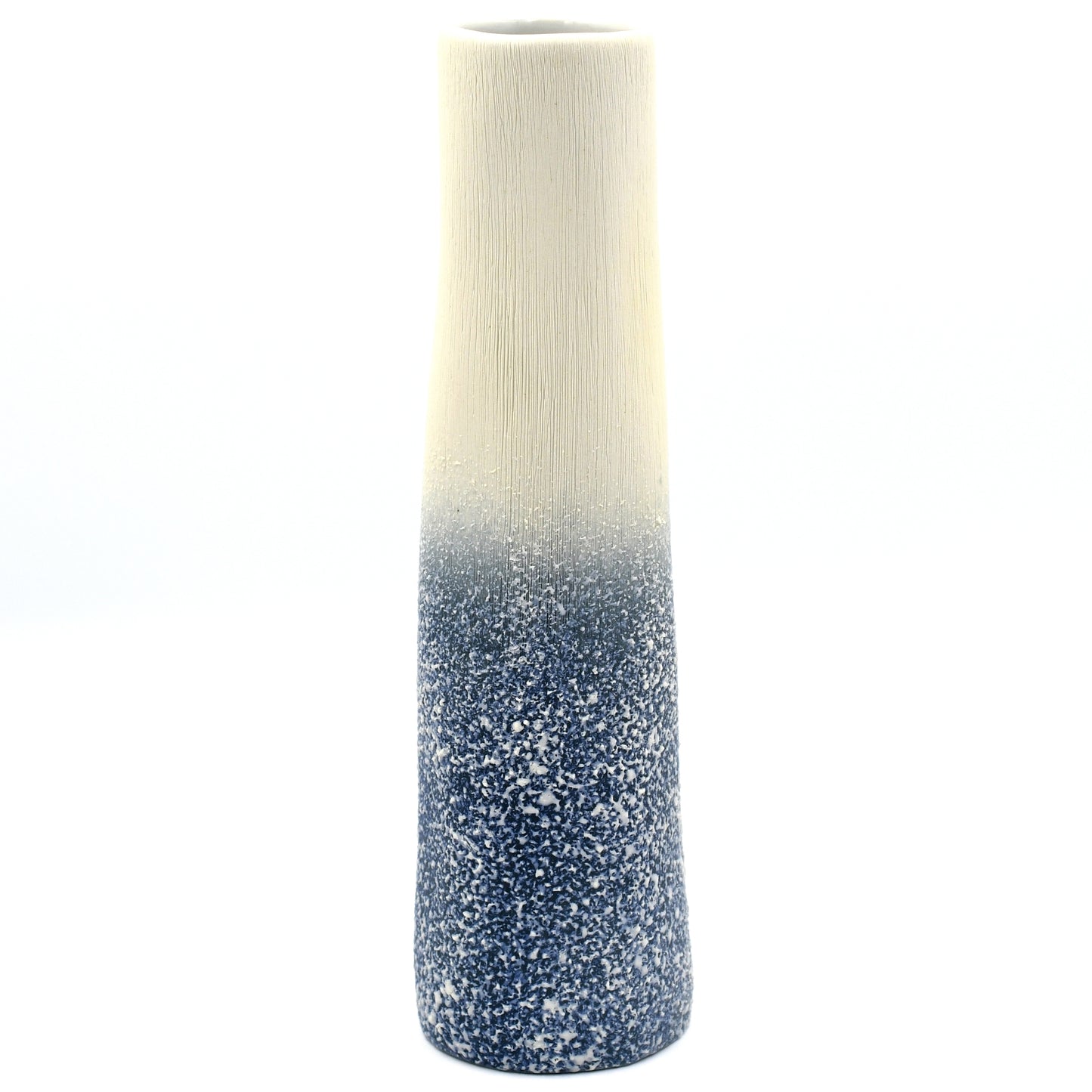 This elegant Koza Vase is a unique addition to any home. The tall porcelain vase is handmade in a beautiful blue and white speckled finish. Add sophistication and style to any room with this one-of-a-kind piece.