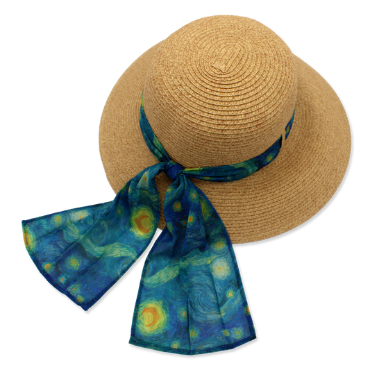 Straw Sunhat with van Gogh's Starry Night Scarf