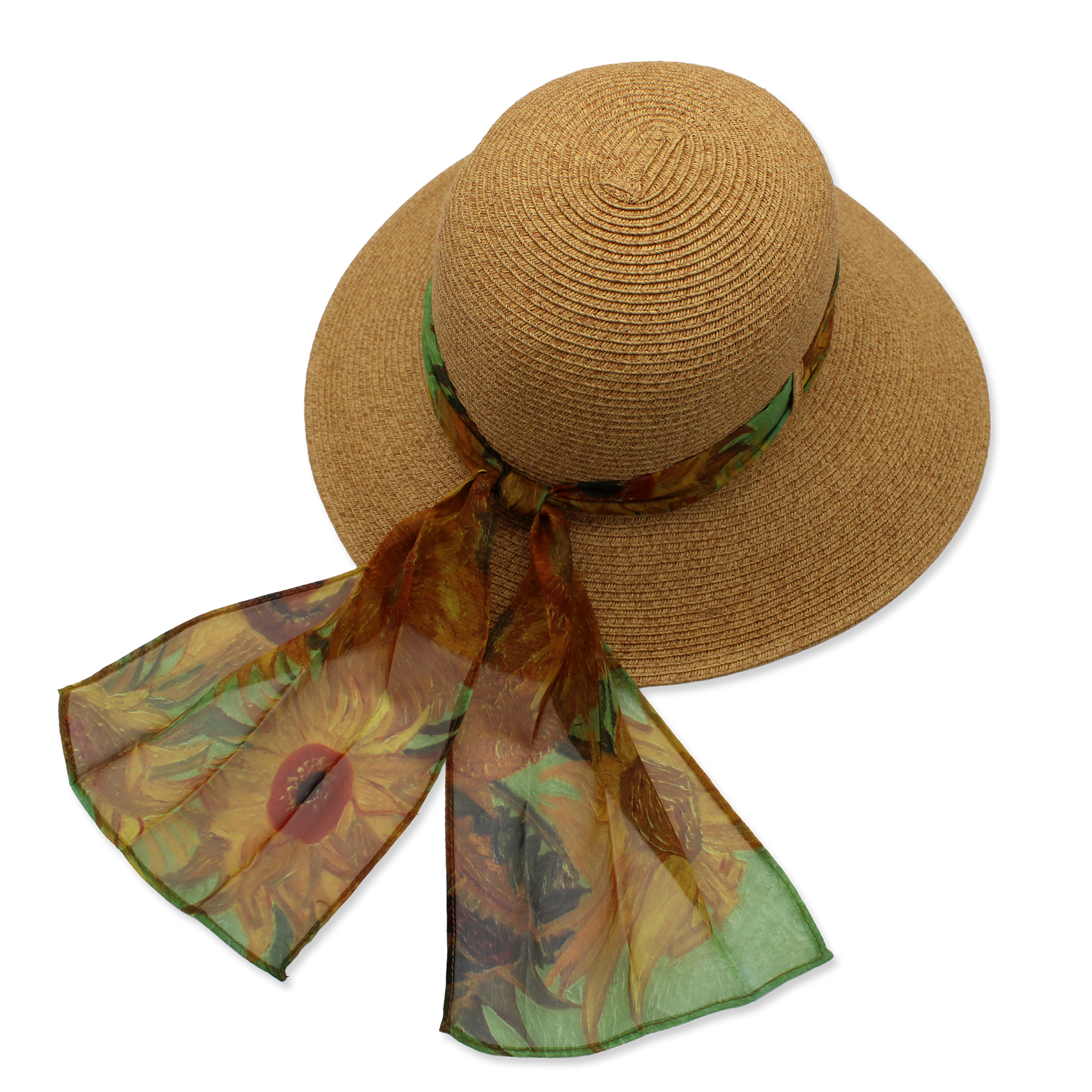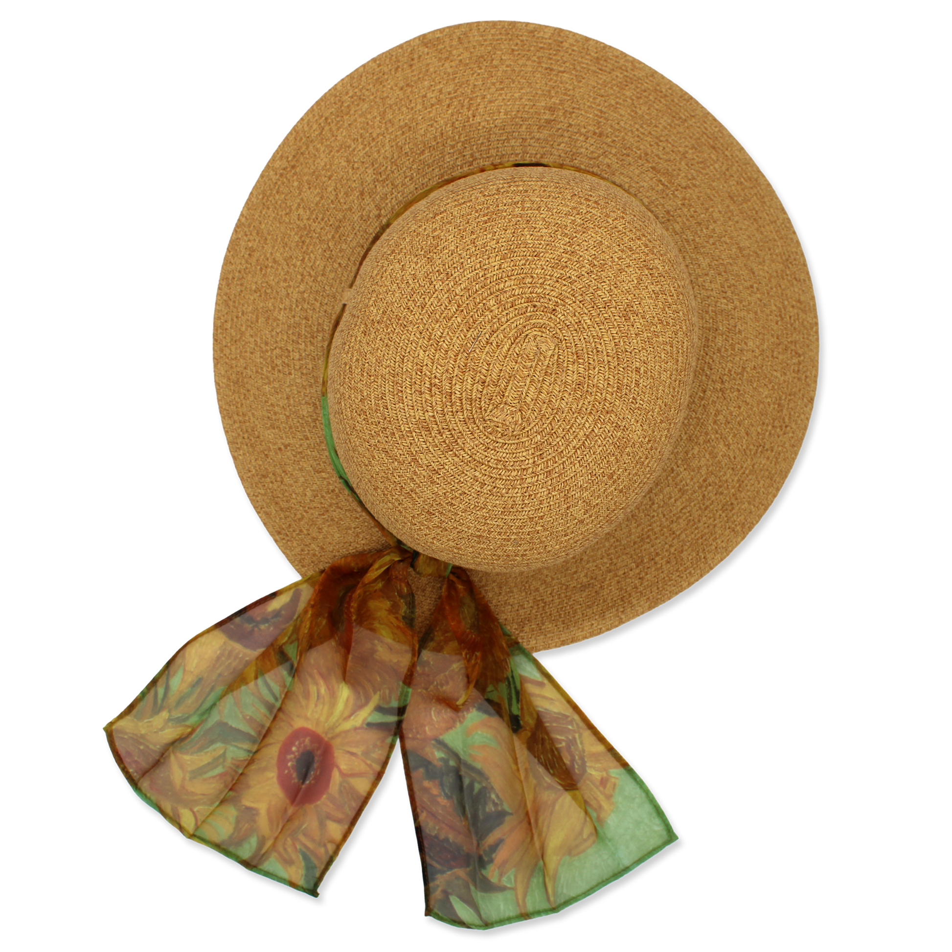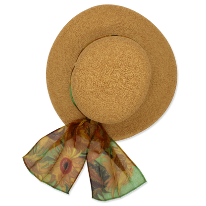 Straw Sunhat with van Gogh's Sunflowers Scarf