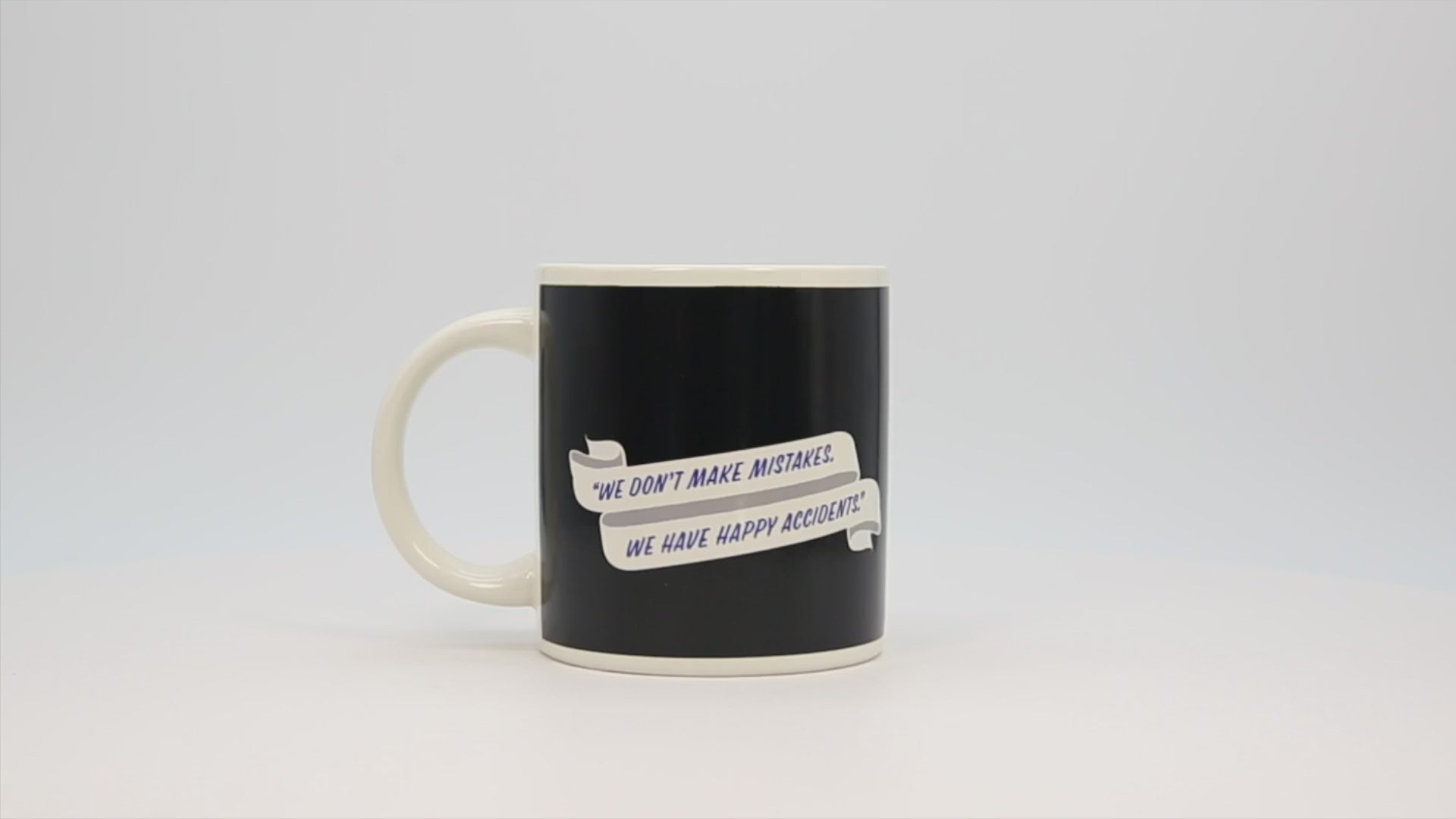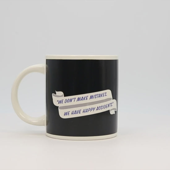 Take a sip and be inspired by Bob Ross with this playful mug. When cold, see Bob Ross reminding you to find time to create. When hot, a painting appears, inspiring your day. Comes in a gift box, holds 12oz. Not dishwasher safe, but microwave safe. What are you waiting for?