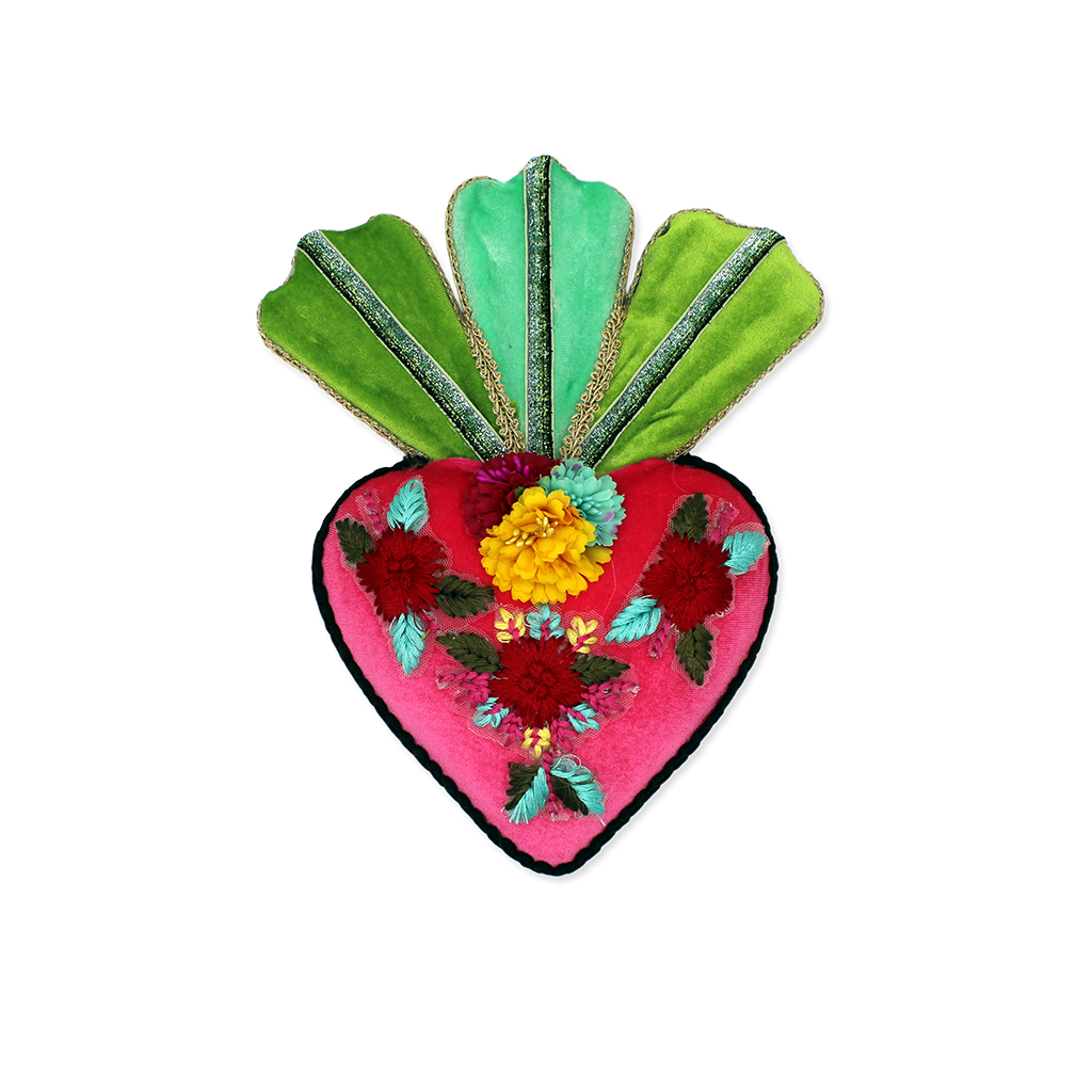 Elevate your space with this exquisite Floral Heart Wall Décor, meticulously handmade from fabric and adorned with vibrant trims. Available in three distinct sizes, each piece is sold individually, allowing you to select the perfect scale for your setting. These ornate floral heart decorations bring a refined touch to holiday celebrations or everyday ambiance, combining craftsmanship with timeless design.