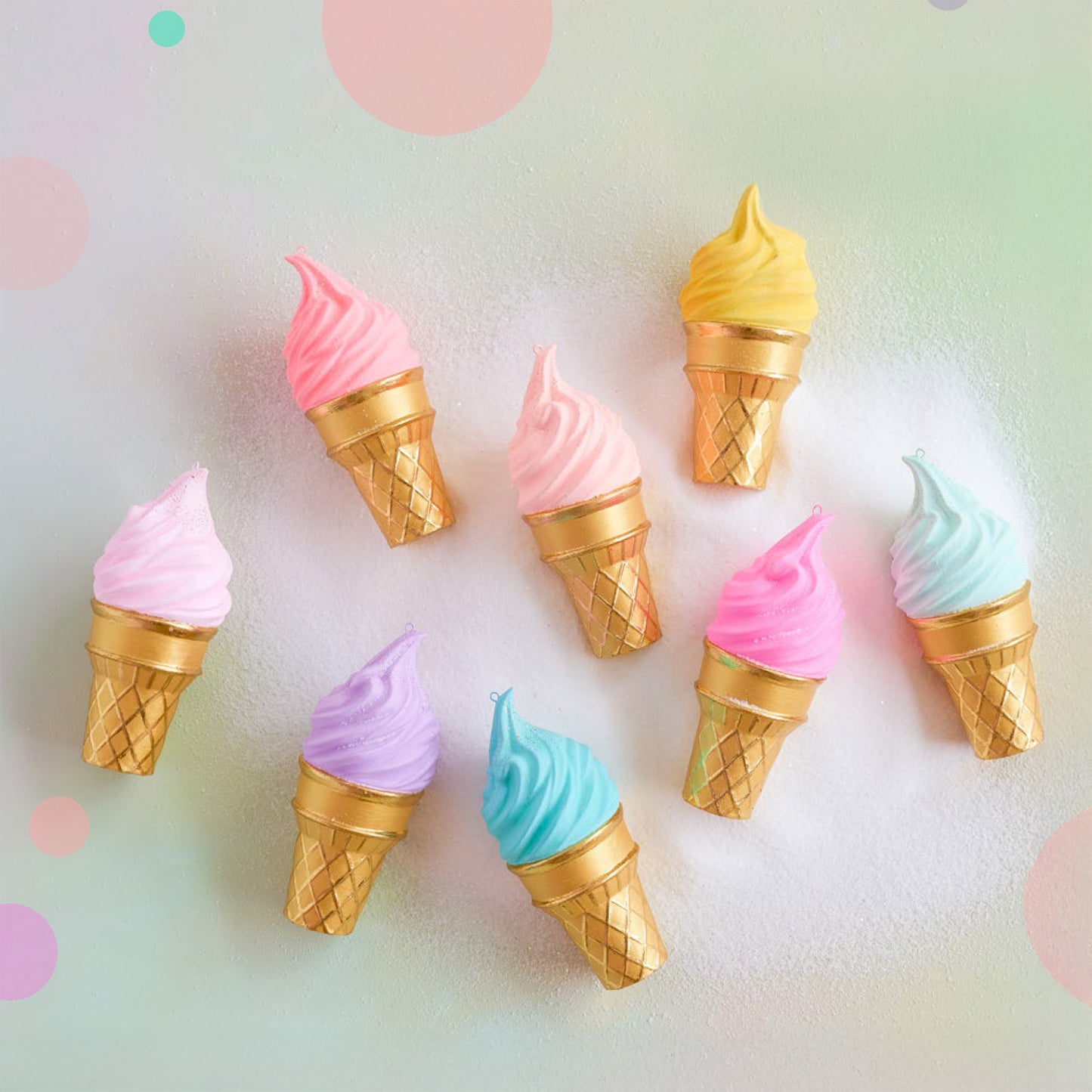 Make everyday a celebration with our Ice Cream Cone Ornament. The shimmering gold cone and colorful swirl of "ice cream" make everyday feel like a celebration. Made of durable resin and hand-painted for a festive touch.