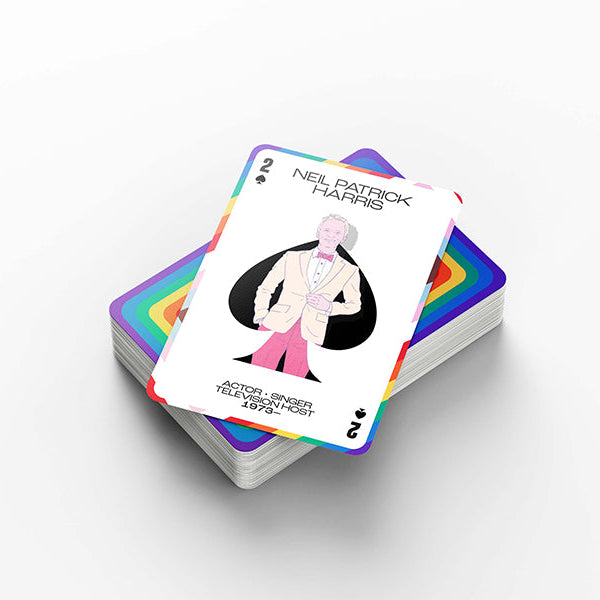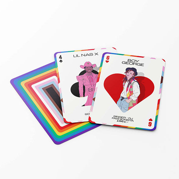 PRIDE Playing Cards are more than just your standard poker set - they are a celebration of LGBTQ+ icons who have shaped our world. This deck features 52 of the most influential activists, artists, comedians, writers, and musicians, showcasing their impact and expanding queer visibility.